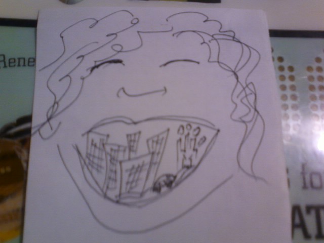 I really love drawing faces and people daydreaming or with odd things coming out of them.