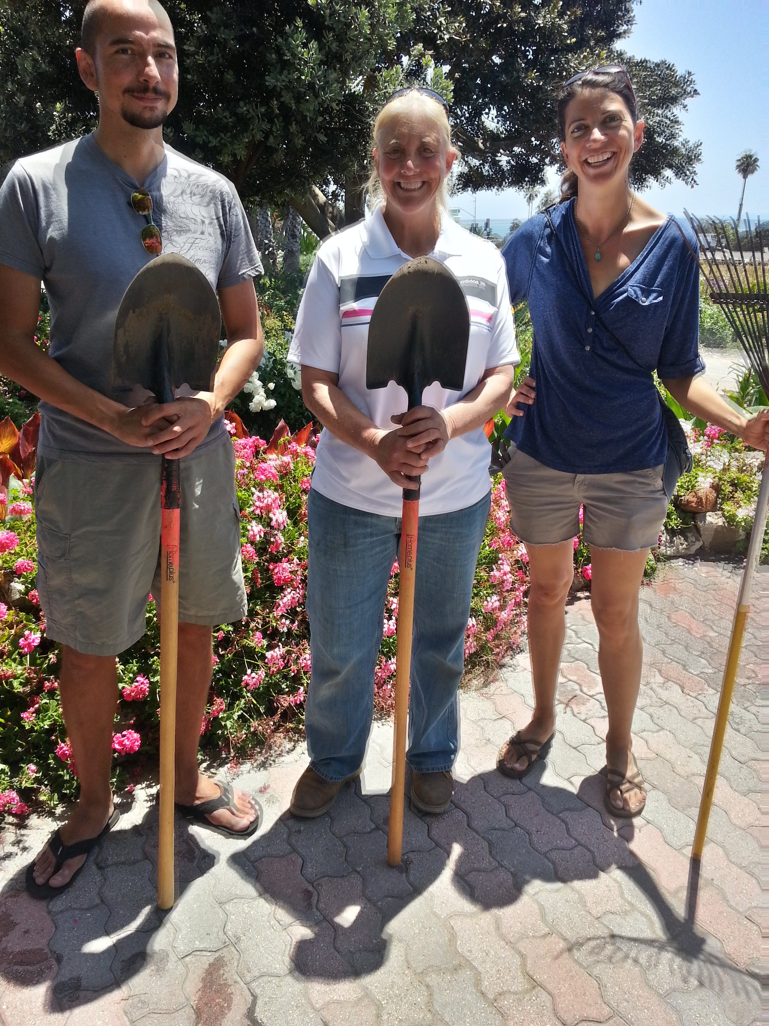 I was lucky to be joined by my brother who is always there when I ask for others to join me in my volunteering adventures. Meeting Linda Lee, the creator of the park was an extra treat. She transformed a bland unhealthy area into a beautiful parkway for all residents and visitors to enjoy. Before reading about her work in the paper last year I had assumed the city was responsible for this parkway. Instead Linda approached the city to improve it and to use organic and sustainable practices while keeping the fees for park maintenance less than the original plan. You can read about Linda in the Coast News.