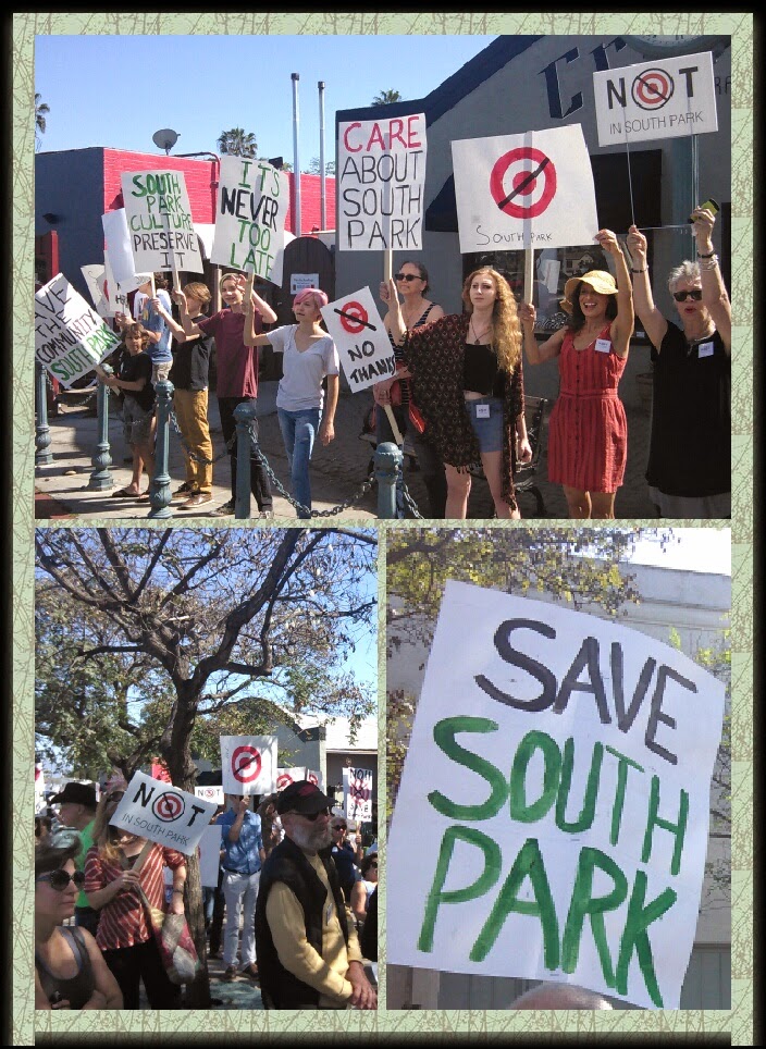 Resident Ernie M. who has lived here for 75 years said even if Target was creating good in the world, “It just doesn’t fit here”. Other residents such as Christina W. who moved here from the suburbs said she didn’t want to lose their small town neighborhood feel. After a few rousing speeches residents marched around the area with “Not in South Park” signs. There was an information table including, free pins and free yard signs as well as, live music and free food from the nearby Big Kitchen restaurant. The organizers are raising funds to create a town council to not just stop this store, but for the ability to be well aware of future projects that threaten their community.